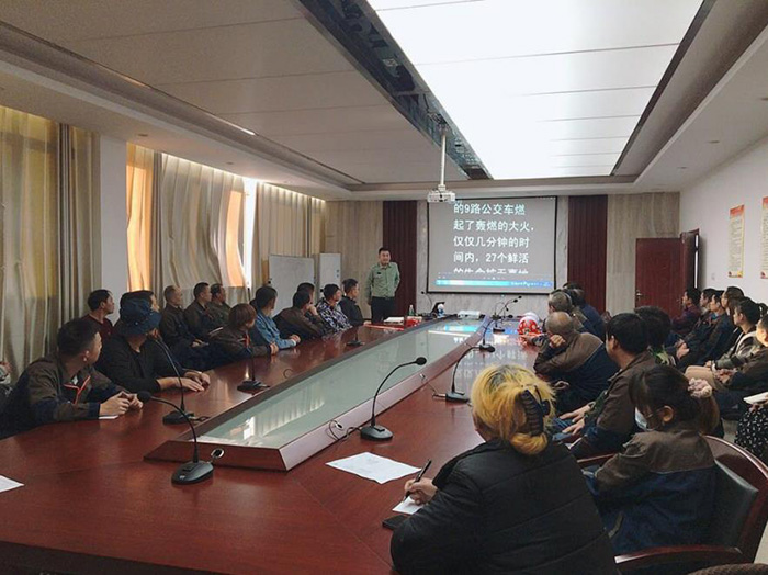 1、公司所有領導、員工都在會議室詳聽消防警官講解消防安全意識