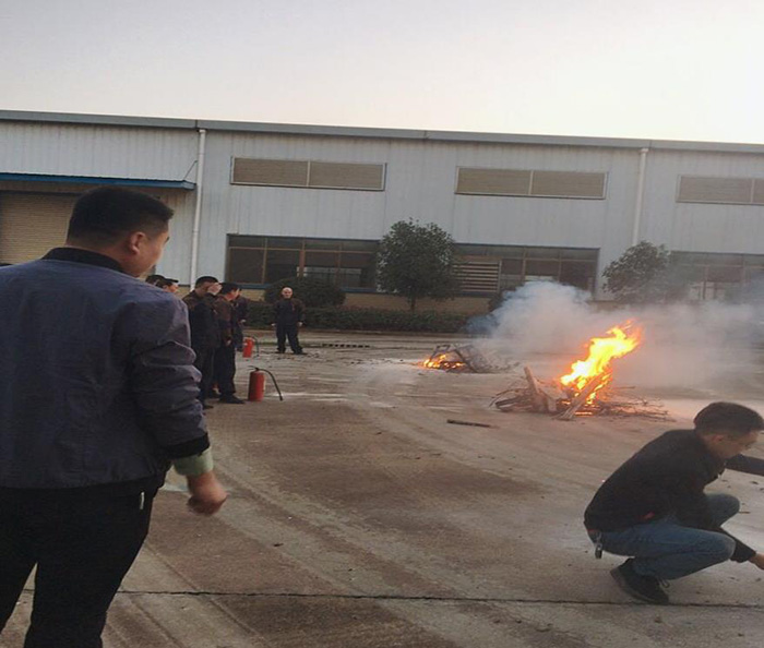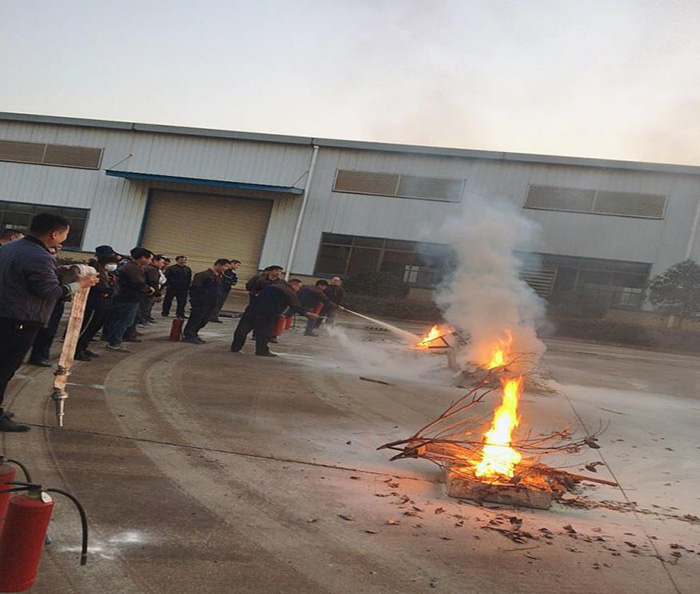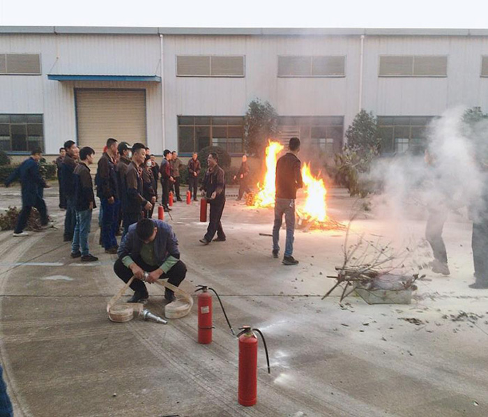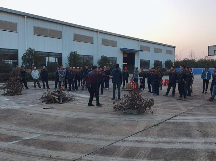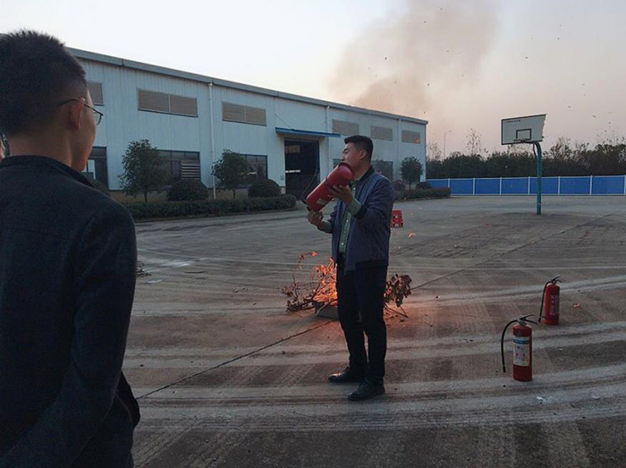 2、聽完講解、消防警官帶領我們?nèi)w員工來到現(xiàn)場做一個消防操作、進行一個消防演習
